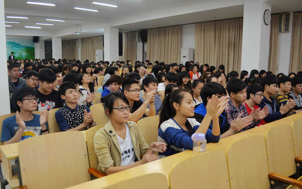 韓祝疇的報告緊扣主題,內(nèi)容豐富,語言生動,期間不時穿插富有教育意義的歌曲和小品視頻,讓同學(xué)們備受啟發(fā)。