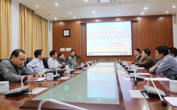 3月14日下午,海南軟件職業(yè)技術(shù)學(xué)院黨委副書記、紀(jì)委書記陳修煥,副院長劉明鵬,院長助理莫仕鋒等領(lǐng)導(dǎo)一行蒞臨我院參觀交流。在家的我院黨委書記陳禮民,黨委副書記、紀(jì)委書記莫運(yùn)深,副院長周運(yùn)詩熱情接待了兄弟院校的領(lǐng)導(dǎo)和老師。