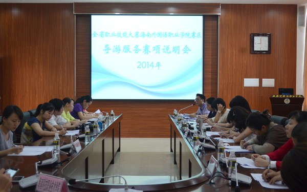 2014年海南省職業(yè)院校技能大賽高職高專學(xué)生實(shí)用英語口語、導(dǎo)游服務(wù)、國際貿(mào)易單證技能賽項(xiàng)說明會在我院召開
