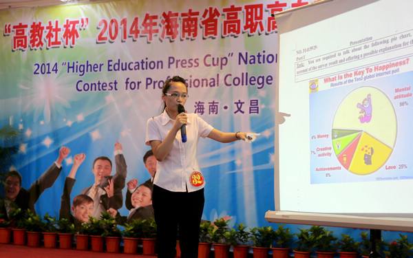 4月18日,2014年海南省高職高專學(xué)生實(shí)用英語口語大賽在我院圓滿落幕,經(jīng)過一天的激烈比賽,我院符欣儀同學(xué)和徐攀峰同學(xué)包攬英語專業(yè)組和非英語專業(yè)組比賽冠軍,獲得一等獎,將代表我省參加第十屆全國高職高專學(xué)生實(shí)用英語口語大賽。郟翌同學(xué)、李香同學(xué)則分別獲得英語專業(yè)組二等獎、非英語專業(yè)組三等獎的好成績。