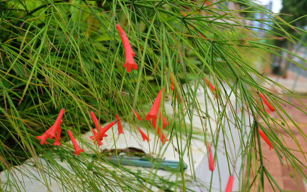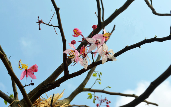 共建路上,石墻邊,隨處可見花兒開得正茂。春色滿園關不住,一支“鳳凰”出墻來。鳳凰花以她那曼妙的身姿,奪目的色澤,毫不掩飾地吸引著來往的路人。那嬌艷的瑰紅色,在初夏將至的陽光下,映襯著一股嬌柔,路上的行人都不禁放慢腳步,抬頭欣賞這根出墻鳳凰花。