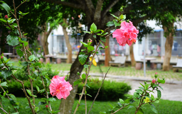 百花齊放,校園一片欣欣向榮。三角梅、大紅花、七彩扶桑、小炮仗花、熱帶櫻花、龍舌蘭、紫薇花、非洲茉莉等朵朵花兒向陽開,不知疲倦般,爭芳斗艷。校園也因為這些花兒而顯得更為生機勃勃、更為美麗燦爛。