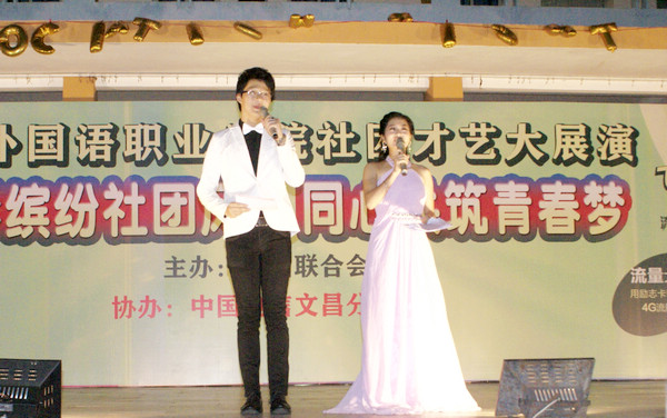 當晚,在陣陣掌聲中,由商務協(xié)會的詩歌朗誦《何為青春》拉開活動的序幕。千影協(xié)會《穿越時空》的表演,把比賽送入第一個高潮,由一開始柔和的《青花瓷》歌唱和伴舞表演,最后突然轉為激情四射的T臺秀,這毫無預兆的轉換,給臺下的觀眾帶來了聽覺和視覺上的完美享受。勤工儉學社的小品《找演員》活靈活現(xiàn)的表演惹得臺下的觀眾捧腹大笑。弄潮兒的兩位學生慷慨激昂的朗誦《祖國頌》不時激起觀眾澎湃的情緒,博得臺下掌聲一片。嫣雅瑜伽社輕緩、優(yōu)美的瑜伽舞蹈,仿佛把大家都帶入了安靜、寧和的世界。英語俱樂部、日語俱樂部等社團精彩的表演不斷掀起活動的一個又一個高潮。最后,活動在卡帶街舞社動感十足中的舞蹈中圓滿結束。