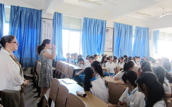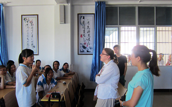 2014年6月17日至20日,應(yīng)用英語系曹陽副主任帶領(lǐng)海南外國語職業(yè)學(xué)院的兩名美籍英語教師和兩名學(xué)生與言愛基金會(huì)校園雙語環(huán)境建設(shè)項(xiàng)目負(fù)責(zé)人郭娃(海南外國語職業(yè)學(xué)院畢業(yè)生)共同走進(jìn)萬寧思源學(xué)校、保亭思源學(xué)校、瓊中民族思源學(xué)校、屯昌思源學(xué)校和定安平和思源學(xué)校,開展了豐富多彩的校園英語角活動(dòng)。
