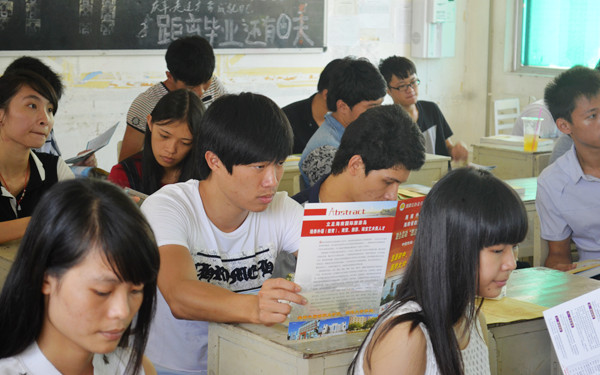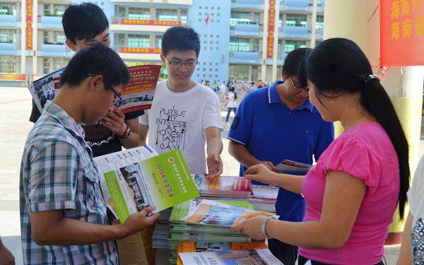 與此同時,由招生就業(yè)指導(dǎo)處、東語系、西語系、旅游系有關(guān)負(fù)責(zé)人組成的另外一支招生宣傳隊伍則奔赴屯昌縣,在屯昌思源實驗高級中學(xué)校園內(nèi)開展招生宣傳工作。