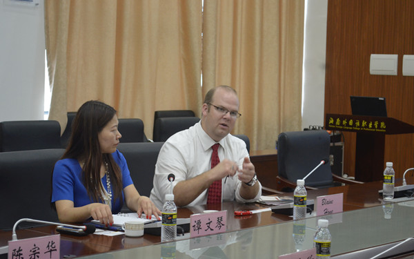 會上,楊學(xué)前副院長對布萊恩?洪先生一行的到來表示歡迎,并向他們簡要介紹了我院基本情況和對外合作交流情況。他說,希望此次布萊恩?洪先生一行的訪問,打開雙方交流與合作的大門,不斷增進(jìn)相互了解,并結(jié)合雙方實(shí)際情況,尋求合作的契合點(diǎn),實(shí)現(xiàn)兩校的共同發(fā)展。