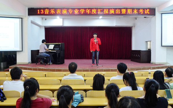 等到同學(xué)們都對自己的專業(yè)知識了解和學(xué)習(xí)后,需要的是一個展示鍛煉的舞臺。因為專業(yè)性質(zhì)的不同,音樂表演專業(yè)的各類成績需要的是展示到同學(xué)、老師們的眼前。每一學(xué)期末,班級的考試都會以匯演的形式進行,學(xué)院領(lǐng)導(dǎo)以及任課老師及其他系的同學(xué)到場聆聽,享受一場音樂盛宴之余,更重要的是對他們的學(xué)習(xí)予以考核評價。期末匯演中,每一位同學(xué)都需要站在舞臺上勇敢面對臺下的觀眾,用真誠的表演打動觀眾。音樂是有生命的,演出中,每一位學(xué)生都盡情投入表現(xiàn)自己,將自己專業(yè)最美好的一面展現(xiàn)給臺下所有的觀眾。演出結(jié)束后,學(xué)院領(lǐng)導(dǎo)、任課老師和其他同學(xué)對演出予以好評,更加堅定了這群學(xué)子今后學(xué)習(xí)路上的藝術(shù)夢想和目標(biāo)。