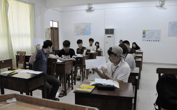 據(jù)悉,在一個多月的學習生活中,韓國研修生們學習漢語基礎(chǔ)知識以及中國禮儀與舞蹈、中國武術(shù)、中國書法藝術(shù)等文化課程,體會和了解中國文化的博大精深。在漢語拼音課上,他們大聲的跟著老師朗讀,一個音節(jié)一個音節(jié)地拼讀著漢字,卯足了勁兒的樣子,總是會讓旁觀者豎起大拇指和露出贊賞的笑容來。而在中國禮儀學習課上,他們有模有樣的模仿著形體老師的動作,幾個活躍者甚至在課堂上教老師在韓國應(yīng)該怎樣行禮。還有氣氛友好熱烈的中韓學生小組學習活動,研修生們與我院韓語專業(yè)的學生交流、互動,漢語、韓語兩種語言交替使用著交談,不斷迸發(fā)出友誼的火花。