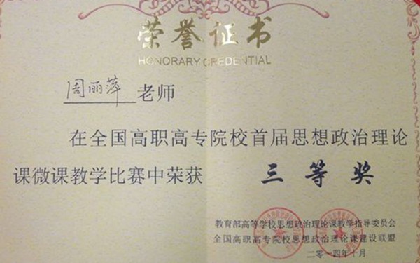 社科部周麗萍老師榮獲全國高職高專院校思想政治理論課微課教學比賽三等獎