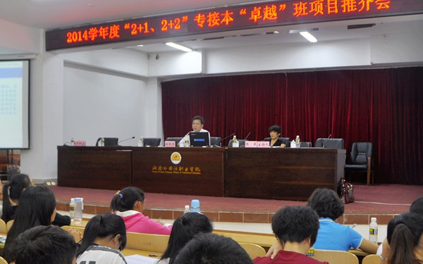 啟動(dòng)儀式結(jié)束后,我院與廣東外語外貿(mào)大學(xué)2014年“2+2(1)卓越班”項(xiàng)目推介會(huì)緊接著舉行。廣東外語外貿(mào)大學(xué)繼續(xù)教育學(xué)院副院長(zhǎng)任越忠向與會(huì)同學(xué)介紹了自學(xué)考試制度及“2+2(1)卓越班”的具體情況。我院培訓(xùn)中心主要負(fù)責(zé)人張萍主持推介會(huì)。