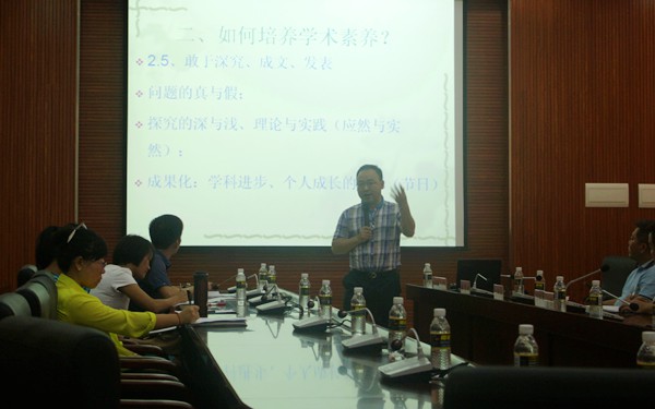 講座中,陳開(kāi)舉教授還就學(xué)術(shù)論文的寫(xiě)作步驟向與會(huì)人員進(jìn)行詳細(xì)分解,并結(jié)合鮮活的實(shí)際例子進(jìn)行佐證說(shuō)明,幽默的講解不時(shí)引發(fā)在場(chǎng)教師的陣陣笑聲。講座的最后10分鐘,陳開(kāi)舉教授還與現(xiàn)場(chǎng)教師進(jìn)行互動(dòng)交流,針對(duì)大家在學(xué)術(shù)論文寫(xiě)作上存在的問(wèn)題和疑惑逐一做出回應(yīng)和解答。