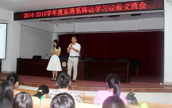 參加學(xué)習(xí)交流會(huì)的東語系相關(guān)負(fù)責(zé)老師也分別介紹了韓語專業(yè)的建設(shè)情況,對大家感興趣的我院與韓國金浦大學(xué)、蔚山大學(xué)合作辦學(xué)的事宜也作了詳細(xì)講解,為同學(xué)們提供了有益的幫助。