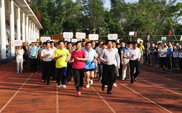 學(xué)院領(lǐng)導(dǎo)帶領(lǐng)師生慢跑操場(chǎng)一圈