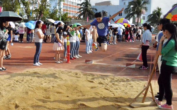 那邊,賽場(chǎng)上跳高跳遠(yuǎn)和實(shí)心球的運(yùn)動(dòng)健兒們,個(gè)個(gè)摩拳擦掌,毫不示弱。騰空躍起的身影,不斷挑戰(zhàn)的長(zhǎng)度,為了得到更好的成績(jī),拼盡全力,即使失敗也毫不放棄。那一起一落,一張一弛,激動(dòng)人心,無不體現(xiàn)了運(yùn)動(dòng)的魅力。