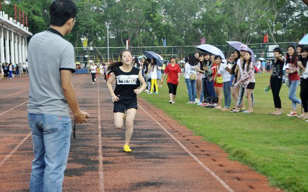 我院田徑運(yùn)動(dòng)會(huì)在持續(xù)進(jìn)行著,來自各系部各班級(jí)的運(yùn)動(dòng)健兒們也在不同賽項(xiàng)上努力比賽著。賽場(chǎng)上,是一片熱火朝天的沸騰景象。這邊,200米賽跑決賽開始了。運(yùn)動(dòng)員們猶如脫了弦的箭射向靶子一樣沖向終點(diǎn),如火苗一般騰空飛起瞬間點(diǎn)燃現(xiàn)場(chǎng)的氣氛。揮舞的旗幟,緊張的音樂,不斷沖刺在跑道上的身影,奏出了團(tuán)結(jié)友愛的樂章! 為了集體的榮譽(yù),他們奮勇向前。