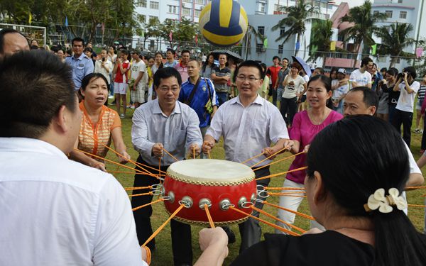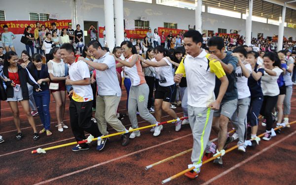 為促進教職工的健身意識,增強他們的身體素質(zhì),推進全民健身在學(xué)院深入開展,每年的田徑運動會將教職工趣味體育比賽列為其中一項內(nèi)容。今年的教職工 趣味比賽花樣多,賽龍舟,動感顛球,心心相印等一系列的比賽項目,形式內(nèi)容層出不窮,挑戰(zhàn)難度系數(shù)也不一般,除了考驗大家身體能力,還考驗大家的默契配合度。
