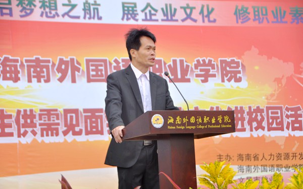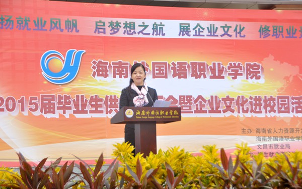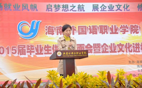 我院李渝鳳院長(zhǎng)指出,在省人力資源開(kāi)發(fā)局和文昌市就業(yè)局的大力支持下,我院成功舉辦此次畢業(yè)生供需見(jiàn)面會(huì)暨企業(yè)文化進(jìn)校園活動(dòng)周活動(dòng),為用人單位選擇合適的人才提供有效平臺(tái),為合作企業(yè)提供展示企業(yè)文化平臺(tái),推動(dòng)我院校企合作辦學(xué)和實(shí)踐教學(xué)工作。我院實(shí)現(xiàn)頂崗實(shí)訓(xùn)與就業(yè)一體化模式,目的是更好地整合校企合作資源,辦出更具外語(yǔ)特色的高等職業(yè)教育。希望參加活動(dòng)的畢業(yè)生調(diào)節(jié)好心態(tài),在當(dāng)前的就業(yè)形勢(shì)下做好計(jì)劃,抓住這次活動(dòng)的機(jī)會(huì),先就業(yè)后擇業(yè),規(guī)劃好未來(lái)職業(yè)生涯,做好就業(yè)前的充分準(zhǔn)備工作。