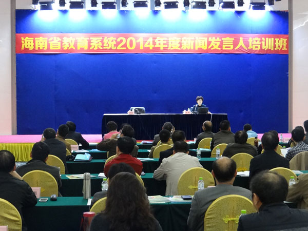 為進(jìn)一步推進(jìn)全省教育系統(tǒng)新聞發(fā)言人制度建設(shè),提升全省教育系統(tǒng)新聞發(fā)布工作水平,12月19日,由省教育廳舉辦的海南省教育系統(tǒng)2014年度新聞發(fā)言人培訓(xùn)班在中國(guó)(海南)改革發(fā)展研究院國(guó)際學(xué)術(shù)交流中心舉行,我院周運(yùn)詩副院長(zhǎng)作為學(xué)院新聞發(fā)言人參加了此次培訓(xùn)。