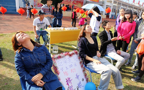 游園活動分為教師趣味游戲組和學生趣味游戲組兩個游戲陣地。教師、學生可根據自己的興趣選擇自己喜歡的游戲活動進行挑戰(zhàn),挑戰(zhàn)成功即可獲得小獎品。在現(xiàn)場,甚至有老師、學生對在場的所有活動進行通關挑戰(zhàn)。加油聲,吶喊聲,歡呼聲一浪接一浪,現(xiàn)場好不熱鬧。游戲“我是點鈔王”對師生們進行了抗干擾能力和記憶力的雙重考驗;“龍鳳戲珠”、“兩人三足”考驗了同學之間的合作精神;更有別開生面的“你比我猜”、“投你所好”、“足球射禮”、“托球跑”、“搶凳子”等游戲給現(xiàn)場帶來了無盡的歡笑。
