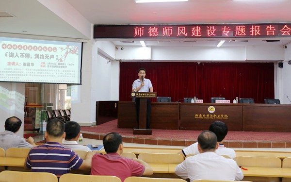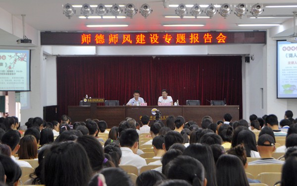 去年10月,我院出臺(tái)了《關(guān)于進(jìn)一步加強(qiáng)師德師風(fēng)建設(shè)的實(shí)施辦法》,在全院范圍內(nèi)大力開(kāi)展師德師風(fēng)建設(shè)活動(dòng)。作為師德師風(fēng)教育的一項(xiàng)重要措施,3月19日下午,我院在圖書(shū)館多功能報(bào)告廳再次舉辦師德師風(fēng)建設(shè)專(zhuān)題報(bào)告會(huì),對(duì)廣大教職工進(jìn)行師德師風(fēng)專(zhuān)題教育,增強(qiáng)教職工提高道德情操、規(guī)范師德師風(fēng)的意識(shí)。