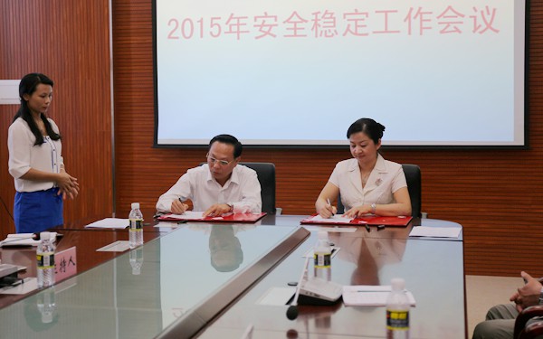 會(huì)上,李渝鳳院長(zhǎng)與各部門主要負(fù)責(zé)人簽訂學(xué)院《2015年安全工作目標(biāo)責(zé)任書》。