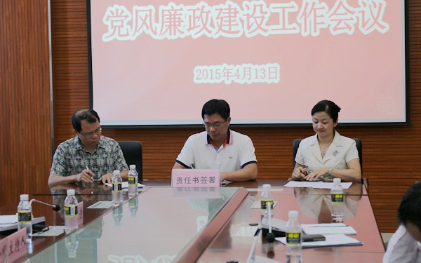 會議最后,學(xué)院黨委書記陳禮民、院長李渝鳳與相關(guān)部門現(xiàn)場簽訂了《學(xué)院2015年黨風(fēng)廉政建設(shè)目標(biāo)責(zé)任書》。