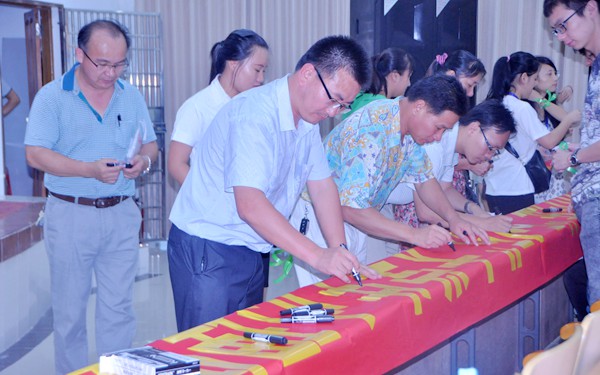 隨后,我院學(xué)生代表宣讀了“5.25”大學(xué)生心理健康日倡議書。緊接著,參加活動(dòng)啟動(dòng)儀式的師生在活動(dòng)宣傳橫幅上簽上了自己名字。最后,在啟動(dòng)儀式現(xiàn)場(chǎng),參會(huì)的學(xué)生與老師們一起,相互為對(duì)方系上了象征著快樂和愉悅、寓意著傳遞健康快樂心情的綠絲帶。