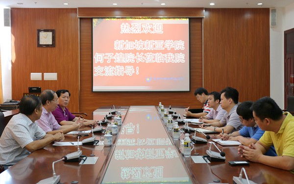 6月1日上午,新加坡新亞學(xué)院院長何子煌一行3人訪問我院,受到我院李渝鳳院長、楊學(xué)前副院長的熱情接見。雙方在綜合樓7樓第一會議室展開座談交流。