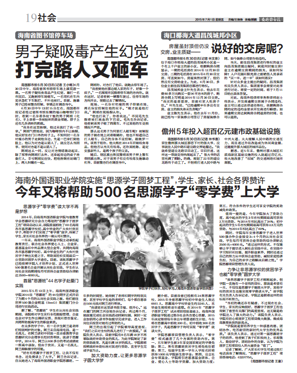 海南外國語職業(yè)學(xué)院實(shí)施“思源學(xué)子圓夢工程”,學(xué)生、家長、社會各界贊許