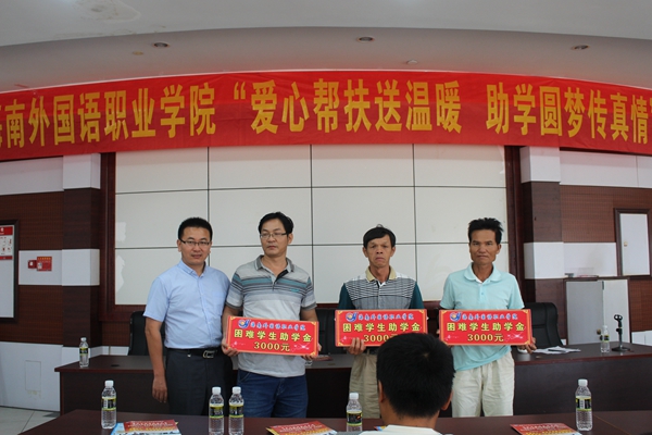 院黨委崔昌華副書記向到會困難學(xué)生家庭發(fā)放助學(xué)金