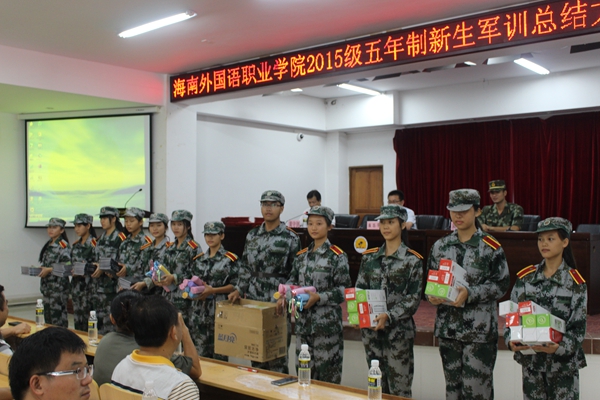 學(xué)院為軍訓(xùn)期間在宿舍內(nèi)務(wù)評(píng)比中獲獎(jiǎng)的星級(jí)文明宿舍頒發(fā)獎(jiǎng)品