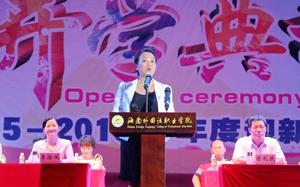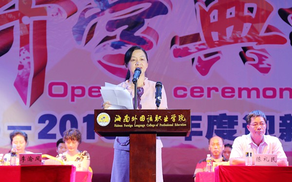 開學(xué)典禮在莊嚴(yán)的國歌中拉開帷幕。李渝鳳院長在典禮上致辭,代表全體師生向新老師、新同學(xué)表示最熱烈的歡迎。在簡要介紹學(xué)院發(fā)展歷程、專業(yè)建設(shè)、人才培養(yǎng)、合作辦學(xué)、基礎(chǔ)設(shè)施建設(shè)等情況以及過去一年學(xué)院在教育教學(xué)方面取得的可喜成績后,她向剛剛?cè)谌氪髮W(xué)生活的新同學(xué)提出希望和要求,一是要勤學(xué)奮進(jìn),放眼國際,要廣泛學(xué)習(xí)吸收世界優(yōu)秀文化,注重學(xué)習(xí)傳承中華優(yōu)秀傳統(tǒng)文化,“讀萬卷書”、“行萬里路”,做一個(gè)學(xué)貫中外、全面發(fā)展的人;二是要學(xué)會(huì)做一個(gè)誠實(shí)誠信、有禮的人,要學(xué)會(huì)禮節(jié)、禮讓、禮貌、禮儀,增強(qiáng)自身內(nèi)涵修養(yǎng)和職業(yè)道德修養(yǎng);三是要學(xué)好職業(yè)技能,要在專業(yè)學(xué)習(xí)中做到勤學(xué)勤練、善思善作。既要學(xué)好專業(yè)知識(shí),又要掌握專業(yè)技能,全面提高綜合素質(zhì),為自身贏得更加廣闊的發(fā)展空間。