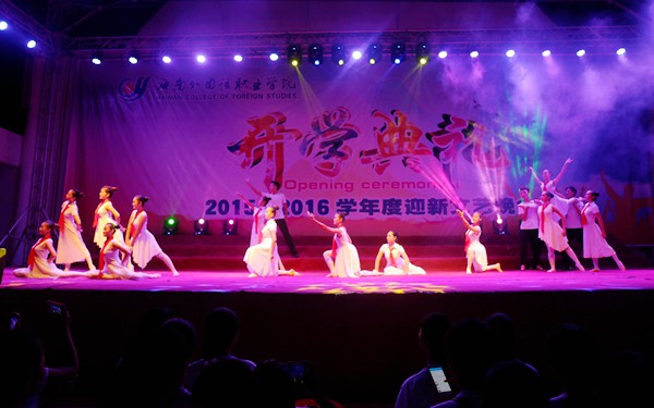 開學(xué)典禮結(jié)束后,迎新文藝晚會(huì)拉開帷幕。由學(xué)院舞蹈團(tuán)帶來的《鮮花的祝?!?、《青春號(hào)角》、《盎然春色》、《祝福祖國》等舞蹈節(jié)目,讓廣大師生大飽眼福。同學(xué)們帶來的歌曲異彩紛呈,符潤泉老師帶來的獨(dú)唱《老百姓》、王蘊(yùn)锜同學(xué)的詩朗誦《祖國頌》深情抒發(fā)了對(duì)祖國的熱愛,卡帶街舞社的街舞表演更是將現(xiàn)場(chǎng)的氣氛推向了高潮。一次次掌聲響徹云霄,絢麗的舞蹈,動(dòng)人的歌聲,讓晚會(huì)現(xiàn)場(chǎng)熱鬧非凡,充滿青春活力。