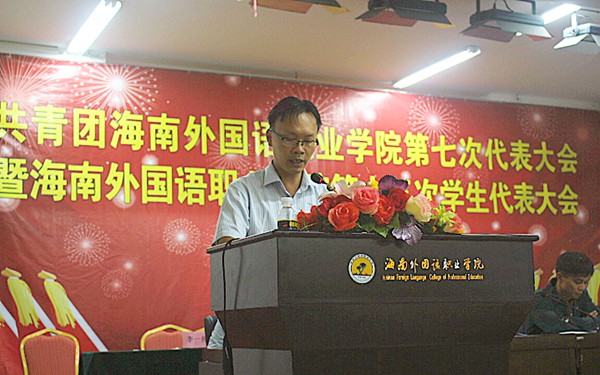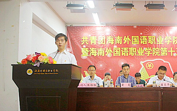 崔昌華副書記代表學(xué)院發(fā)表講話,對(duì)我院共青團(tuán)過去五年的工作給予了高度評(píng)價(jià),充分肯定了共青團(tuán)和廣大青年在我院發(fā)展建設(shè)中做出的積極貢獻(xiàn),提出了共青團(tuán)和廣大團(tuán)員青年今后工作的崇高使命和光榮任務(wù),表達(dá)了對(duì)青年學(xué)生的充分信任和殷切希望。他勉勵(lì)全體團(tuán)員青年要以本次大會(huì)為契機(jī),在學(xué)院黨委和上級(jí)團(tuán)組織的正確領(lǐng)導(dǎo)下,進(jìn)一步堅(jiān)定理想信念、奮發(fā)有為,進(jìn)一步增強(qiáng)歷史使命感和社會(huì)責(zé)任感,自覺踐行好社會(huì)主義核心價(jià)值觀,爭(zhēng)做民族精神、時(shí)代精神和海南外國語職業(yè)學(xué)院精神的傳承者、踐行者,為實(shí)現(xiàn)中華民族偉大復(fù)興,為加快實(shí)現(xiàn)我院“建設(shè)成為質(zhì)量?jī)?yōu)良、特色鮮明、國際化水平高的應(yīng)用型外國語學(xué)院”目標(biāo)添磚加瓦、貢獻(xiàn)力量。