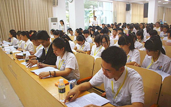 10月11日,在全院上下深入貫徹落實(shí)黨的十八大和十八屆三中、四中全會(huì)精神,以及習(xí)近平總書記系列重要講話精神的大好形勢(shì)下,在全院各級(jí)團(tuán)組織以團(tuán)十七大、十七屆二中全會(huì)和省第六次團(tuán)代會(huì)精神為指導(dǎo),為實(shí)現(xiàn)兩個(gè)一百年的宏偉目標(biāo)而努力奮斗的新形勢(shì)下,在學(xué)院黨委、上級(jí)團(tuán)組織和省學(xué)聯(lián)的親切關(guān)懷和在悉心指導(dǎo)下,全院團(tuán)員青年熱切期盼的中國共產(chǎn)主義青年團(tuán)海南外國語職業(yè)學(xué)院第七次代表大會(huì)暨海南外國語職業(yè)學(xué)院第十五次代表大會(huì)勝利召開,來自學(xué)院各級(jí)團(tuán)、學(xué)組織的361名團(tuán)、學(xué)代表出席大會(huì)。