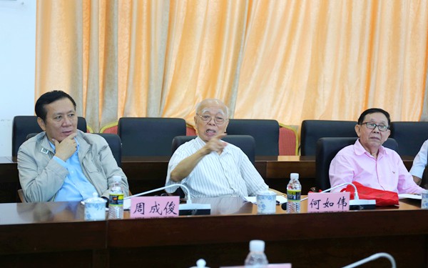作為曾任我院前身、當(dāng)時(shí)的“文昌縣立簡易師范學(xué)?!避娛麓淼目箲?zhàn)老兵,何如偉老先生還在會(huì)上帶領(lǐng)大家共同重溫了我院建校歷史,對我院未來發(fā)展提出了希望和要求。