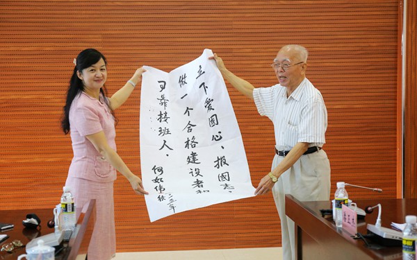 何如偉老先生寄語當(dāng)代大學(xué)生要“立下愛國心、報(bào)國志,做一個(gè)合格建設(shè)者和可靠接班人”