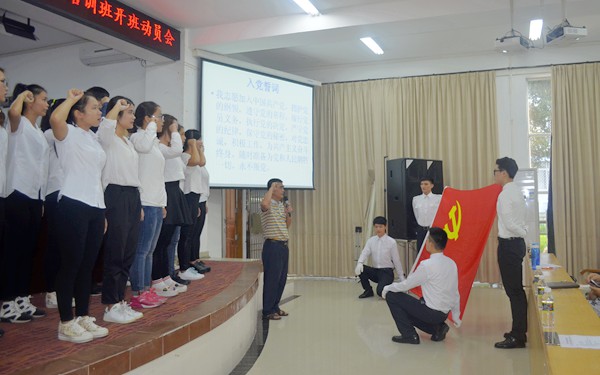 隨后,組織統戰(zhàn)部部長許環(huán)碧就培訓班的課程內容、時間安排等具體事項向學員們做出強調和說明。儀式期間,參訓學員代表作了表態(tài)發(fā)言;新加入中國共產黨的同學們面向黨旗宣誓,做出他們人生中最鄭重的承諾。