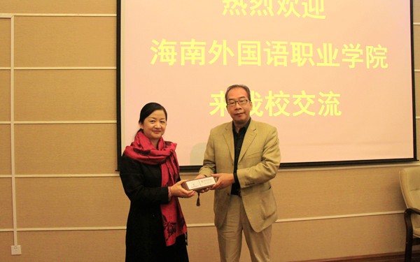 李渝鳳院長(zhǎng)發(fā)言時(shí),首先介紹了我院基本情況。李院長(zhǎng)接下來(lái)指出,廣西民族大學(xué)在東南亞語(yǔ)言文化專業(yè)辦學(xué)歷史悠久,已取得突出的成績(jī),成為了東盟語(yǔ)言文化人才培養(yǎng)和科學(xué)研究的一個(gè)重要基地,多年來(lái)已為國(guó)家培養(yǎng)了一批優(yōu)秀小語(yǔ)種人才。李院長(zhǎng)希望廣西民族大學(xué)在東南亞語(yǔ)言專業(yè)建設(shè)上能夠給予我院鼎力支持,希望能夠從廣西民族大學(xué)引進(jìn)泰語(yǔ)、越南語(yǔ)等專業(yè)優(yōu)秀博士碩士畢業(yè)生到我院任教;希望雙方互換東南亞專業(yè)學(xué)生到對(duì)方學(xué)校學(xué)習(xí)交流;希望雙方共同合作申請(qǐng)國(guó)家級(jí)外語(yǔ)類科研課題項(xiàng)目,共同建設(shè)小語(yǔ)種專業(yè)教學(xué)資源庫(kù)。李院長(zhǎng)還熱情邀請(qǐng)廣西民族大學(xué)東南亞語(yǔ)言文化專家到海南講學(xué),共同舉辦東南亞語(yǔ)言文化周等活動(dòng)。通過(guò)座談,雙方一致同意在東南亞語(yǔ)種專業(yè)上建立全面合作關(guān)系,雙方在小語(yǔ)種師資隊(duì)伍建設(shè)、人才培養(yǎng)、教學(xué)和科研服務(wù)等方面開展全方位的深度合作。雙方將盡快簽署合作協(xié)議,努力把兩校合作發(fā)展成為瓊、桂兩省高等教育合作的范例,共同促進(jìn)兩省的教育合作交流工作。最后,廣西民族大學(xué)黃世喆副校長(zhǎng)向李渝鳳院長(zhǎng)贈(zèng)送了東南亞小語(yǔ)種類專業(yè)圖書,李渝鳳院長(zhǎng)向黃世喆副校長(zhǎng)贈(zèng)送了我院創(chuàng)業(yè)學(xué)生的作品。