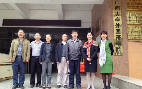 12月3日,李渝鳳院長(zhǎng)一行3人到廣西大學(xué)考察交流。考察組參觀了廣西大學(xué)外國(guó)語(yǔ)學(xué)院語(yǔ)言實(shí)訓(xùn)室后,雙方接著進(jìn)行了深入的座談交流。廣西大學(xué)外國(guó)語(yǔ)學(xué)院院長(zhǎng)祝遠(yuǎn)德、研究生副院長(zhǎng)關(guān)熔珍、英語(yǔ)系主任謝建奎、東南亞語(yǔ)系主任林志亮和副主任盧錦纓出席座談會(huì)。在座談中,廣西大學(xué)外國(guó)語(yǔ)學(xué)院介紹了該院基本情況,特別是詳細(xì)介紹了英語(yǔ)、泰語(yǔ)、越南語(yǔ)3個(gè)外語(yǔ)專業(yè)建設(shè)的基本情況。李渝鳳院長(zhǎng)在交流中指出,廣西大學(xué)外國(guó)語(yǔ)學(xué)院的領(lǐng)導(dǎo)和老師去年曾到我院訪問(wèn),我們這次回訪目的是希望進(jìn)一步加強(qiáng)雙方的交流溝通,互通往來(lái),探求合作,努力為國(guó)家“一帶一路”倡議共同做好外語(yǔ)人才培養(yǎng)工作。李院長(zhǎng)希望兩院在英語(yǔ)、日語(yǔ)這兩個(gè)通用語(yǔ)專業(yè)能夠進(jìn)行合作,尤其希望在泰語(yǔ)、越南語(yǔ)等小語(yǔ)種專業(yè)進(jìn)行人才培養(yǎng)合作,實(shí)行學(xué)生互換學(xué)習(xí)。雙方在交流中達(dá)成了初步共識(shí),廣西大學(xué)外國(guó)語(yǔ)學(xué)院同意選派小語(yǔ)種優(yōu)秀畢業(yè)生到我院進(jìn)行頂崗實(shí)習(xí),我院選派小語(yǔ)種專業(yè)學(xué)生到廣西大學(xué)外國(guó)語(yǔ)學(xué)院學(xué)習(xí)。