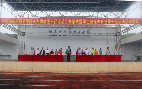 冬日暖陽,舒適愜意。12月23日上午,我院第九屆學生田徑運動會暨2015年學生陽光體育冬季長跑活動在田徑運動場開幕。學院黨委書記陳禮民,院長李渝鳳,黨委副書記、紀委書記崔昌華,副院長周運詩,副院長楊學前,以及全體師生出席了運動會開幕式。周運詩副院長主持開幕式。
