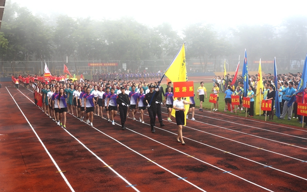 開幕式伊始,伴隨著激昂澎湃的運動員進行曲,學院各部門、各系部方陣列隊入場,他們身著統(tǒng)一服裝,踏著昂揚的節(jié)奏,喊著響亮的口號,邁著整齊的步伐,氣宇軒昂的向主席臺走來,無不展示我院師生蓬勃向上的精神風貌。