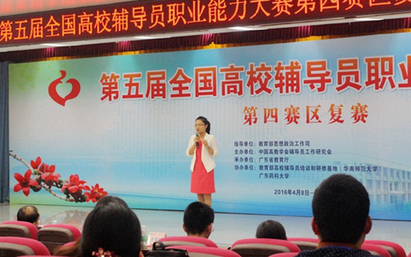 4月9日至10日,由教育部思想政治工作司指導(dǎo),中國高教學(xué)會輔導(dǎo)員工作研究會主辦,廣東省教育廳、教育部高校輔導(dǎo)員培訓(xùn)和研修基地(華南師范大學(xué))、廣東藥科大學(xué)共同組織的第五屆全國高校輔導(dǎo)員職業(yè)能力大賽第四賽區(qū)復(fù)賽在廣東藥科大學(xué)舉行。來自海南、廣東、廣西、福建、云南、西藏六省區(qū)的60名選手同場競技。我院選派的輔導(dǎo)員吳海翠在大賽中表現(xiàn)突出,從60名選手中脫穎而出,并最終榮獲二等獎。