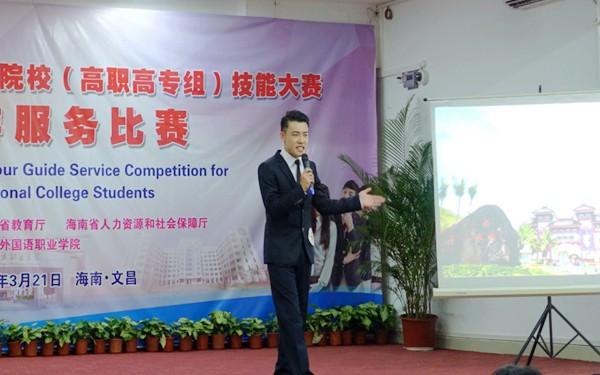 3月21日至22日,2016年海南省職業(yè)院校(高職高專組)技能大賽“導游服務”比賽在我院成功舉行,來自省內(nèi)11所高職院校的35名同學參加了該項比賽,其中我院共派出4名選手參加此項賽事的角逐。經(jīng)過兩天的激烈比賽,我院王家興同學獲得中文導游服務比賽一等獎,成卓同學獲得英文導游服務比賽一等獎,再次用優(yōu)異成績?yōu)槲以籂幍昧藰s譽,這也是我院學生連續(xù)第4年獲得海南省職業(yè)院校(高職高專組)技能大賽“導游服務”比賽中文組和英文組一等獎。