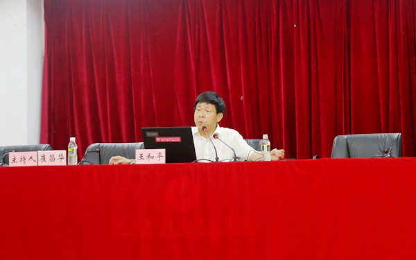 4月13日下午,我院在圖書館多功能報(bào)告廳舉行了形勢與政策專題報(bào)告會,邀請中共海南省委黨校副校長王和平教授來校作“培育和踐行社會主義核心價(jià)值觀”主題報(bào)告。學(xué)院黨委副書記、紀(jì)委書記崔昌華主持報(bào)告會。各系部黨總支(直屬黨支部)主要負(fù)責(zé)人、全體思政課教師,在校生黨員、入黨積極分子和部分大一新生參加了報(bào)告會。