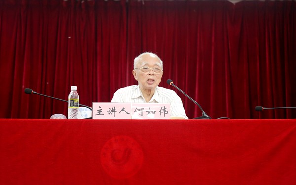 座談會伊始,省關(guān)工委常務(wù)副主任何如偉為大家作了一場題為《黨的光輝歷程》的專題報告。何老今年已經(jīng)是91歲高齡,1939年初在家鄉(xiāng)參加抗日救亡運動,1940年離家參加革命,1942年加入中國共產(chǎn)黨,是一名有76年工齡,74年黨齡的瓊崖縱隊老戰(zhàn)士、老黨員。在報告中,何老悉心地為大家講述了中國共產(chǎn)黨由誕生、發(fā)展、壯大到建立新中國,以及帶領(lǐng)全國人民建設(shè)小康社會艱難而輝煌的革命歷程,同時結(jié)合自身的斗爭經(jīng)歷,向大家闡述了中國共產(chǎn)黨走過95年和瓊崖地方黨走過的90周年艱苦卓絕的風(fēng)雨歷程,總結(jié)出沒有共產(chǎn)黨就沒有新中國的偉大真理。