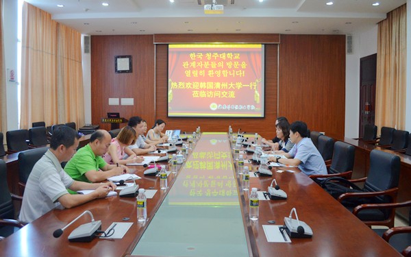 座談中,楊學(xué)前副院長(zhǎng)對(duì)清州大學(xué)客人的來(lái)訪表示歡迎,并對(duì)我院從發(fā)展歷史、辦學(xué)特色、專業(yè)建設(shè)、辦學(xué)成果等方面做了簡(jiǎn)要介紹,重點(diǎn)介紹了我院外語(yǔ)教學(xué)的優(yōu)勢(shì)和成果,指出希望借此次交流座談為契機(jī),打開(kāi)雙方合作局面。