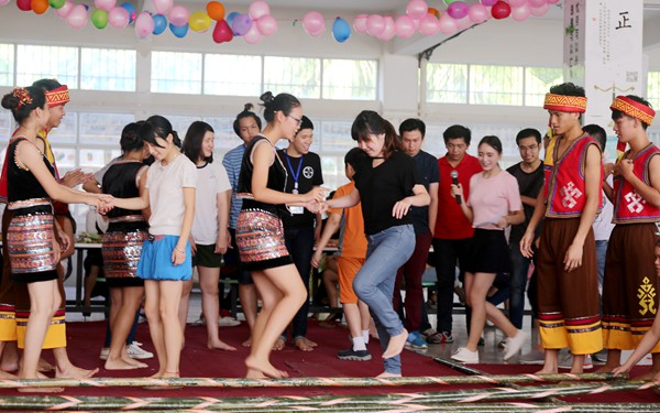 聯(lián)誼會上,隨著主持人精彩的致辭拉開了本次“尋根之旅”夏令營聯(lián)誼會的帷幕,我院學生帶來的舞蹈表演、器樂表演吸引了營員們的眼球。首先登場的是古箏表演,傳統(tǒng)的韻律讓人一睹了中國傳統(tǒng)文化的魅力;我院舞蹈團帶來的舞蹈表演驚艷全場,優(yōu)美的舞姿引來了陣陣的歡呼;而作為壓軸出場的具有海南民族特色的竹竿舞更是以獨特的舞蹈形式和民族服裝,靈動的舞姿,青春的笑容將海南少數(shù)民族竹竿舞文化展現(xiàn)得淋漓盡致。聯(lián)誼會還穿插了小游戲環(huán)節(jié),營員們也都開心的參與其中,將聯(lián)誼會氣氛推向了高潮。這次聯(lián)誼會融合了國家文化元素,傳統(tǒng)和現(xiàn)代兩種不同的風格,讓人感受到了文化多元的繽紛與美好,在場觀眾看得津津有味,整個現(xiàn)場都沉浸在一片歡樂的海洋。