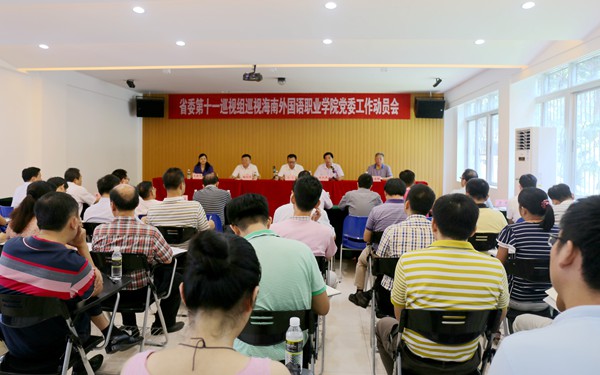 根據(jù)省委部署和省委巡視工作領(lǐng)導(dǎo)小組安排,省委第十一巡視組進(jìn)駐海南外國語職業(yè)學(xué)院開展巡視工作。8月5日上午,省委巡視組巡視海南外國語職業(yè)學(xué)院黨委工作動(dòng)員會(huì)召開,學(xué)習(xí)傳達(dá)習(xí)近平總書記關(guān)于巡視工作的重要講話精神和省委書記同志在省委“五人小組”會(huì)上有關(guān)講話精神,省委第十一巡視組組長馬飛就即將開展的巡視工作作了講話,省委巡視辦副主任楊劍華就配合做好巡視工作提出要求。海南外國語職業(yè)學(xué)院黨委書記陳禮民主持會(huì)議并作表態(tài)發(fā)言。