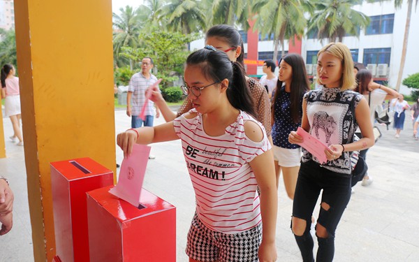 在圖書館多功能報告廳主會場,學(xué)院黨委副書記、紀(jì)委書記崔昌華主持了選舉大會。會議介紹了我院選舉工作情況,表決通過了《文昌市新一屆人民代表大會代表選舉辦法(草案)》、總監(jiān)票人和監(jiān)票人名單;宣讀了總計票人和計票人名單、我院選區(qū)代表正式候選人名單。隨后,監(jiān)票人檢查了票箱,工作人員向各位選民分發(fā)了選票。最后,選民認(rèn)真填寫選票,為選舉我院文昌市人大代表投上了自己神圣的一票。